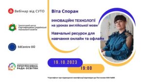 Відеозапис вебінару “Інноваційні технології на уроках англійської мови. Навчальні ресурси для навчання онлайн та офлайн”